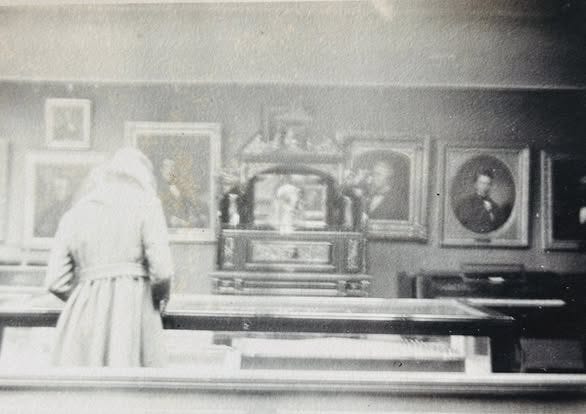 Today we are in a little museum near what was once Drakesville. The walls are lined with portraits of intimidating white men in beards, intricately framed. Their names are unfamiliar, not a Drake in the bunch. There is a little piano that was once in someone’s parlor, and a glass-enclosed case featuring artifacts of the past. The late-autumn air is chilly, and I’m glad for my wool coat. The proprietor of the museum keeps the tiny woodstove tamed, as if it might reach out and burn the place down, burn down all of what’s left of the memories.